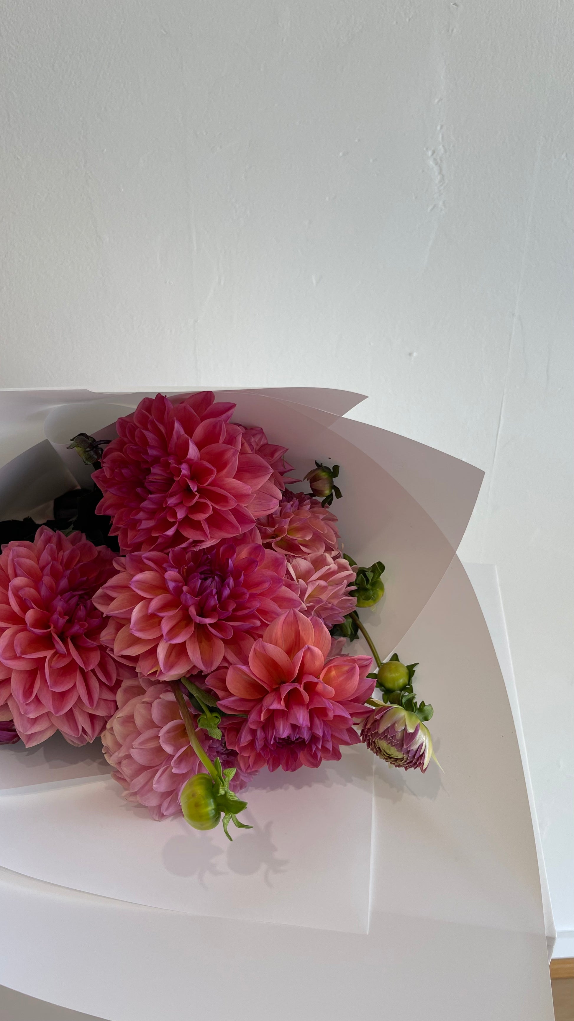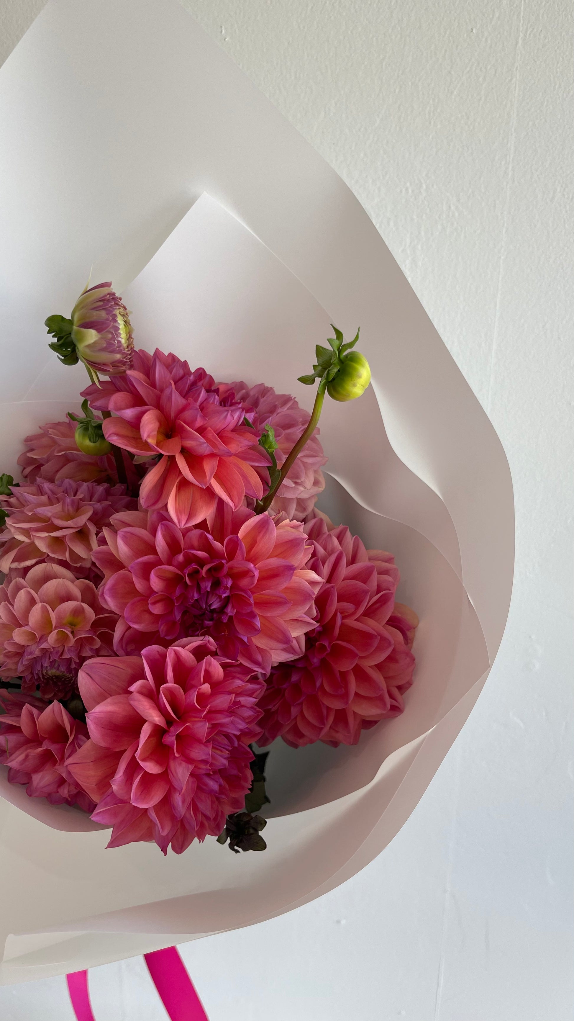 Seasonal summer blooms en masse, gathered en masse for a look that’s both striking and effortlessly elegant. Each bunch is a delightful surprise—featuring whatever is flourishing right now. Think vibrant dahlias, sun-kissed roses, lisianthus, zinnias, hydrangeas, depending on the day’s best picks.